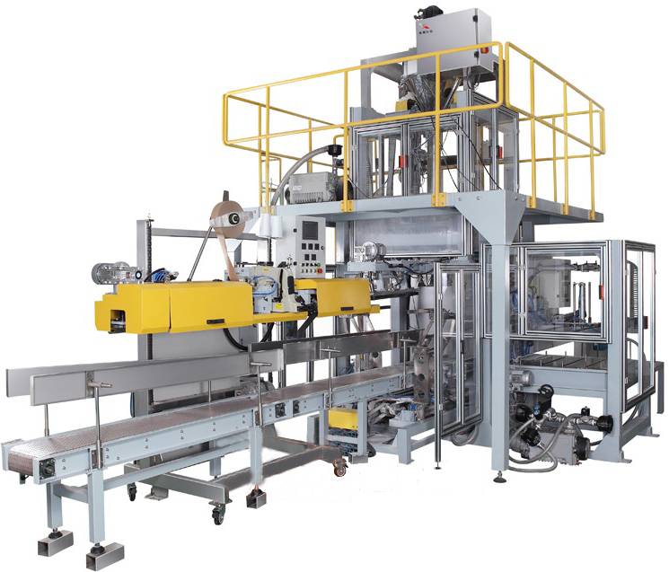 我公司针对化工、粮食、农化、食品等行业的大袋子粉末物料包装而设计的新型包装机机组,该机组具有自动称量、自动上袋、自动填充、自动送包、自动封口等功能。可与后道码垛机器人等设备实现联动,实现大规格包装、码垛无人化作业。